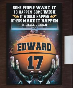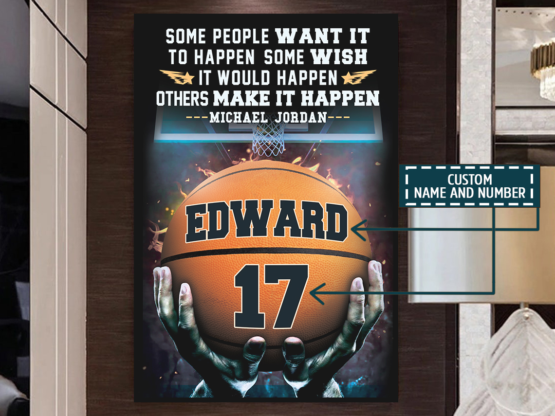 Personalized Name Number Make It Happen Basketball Motivation Poster Home Decor